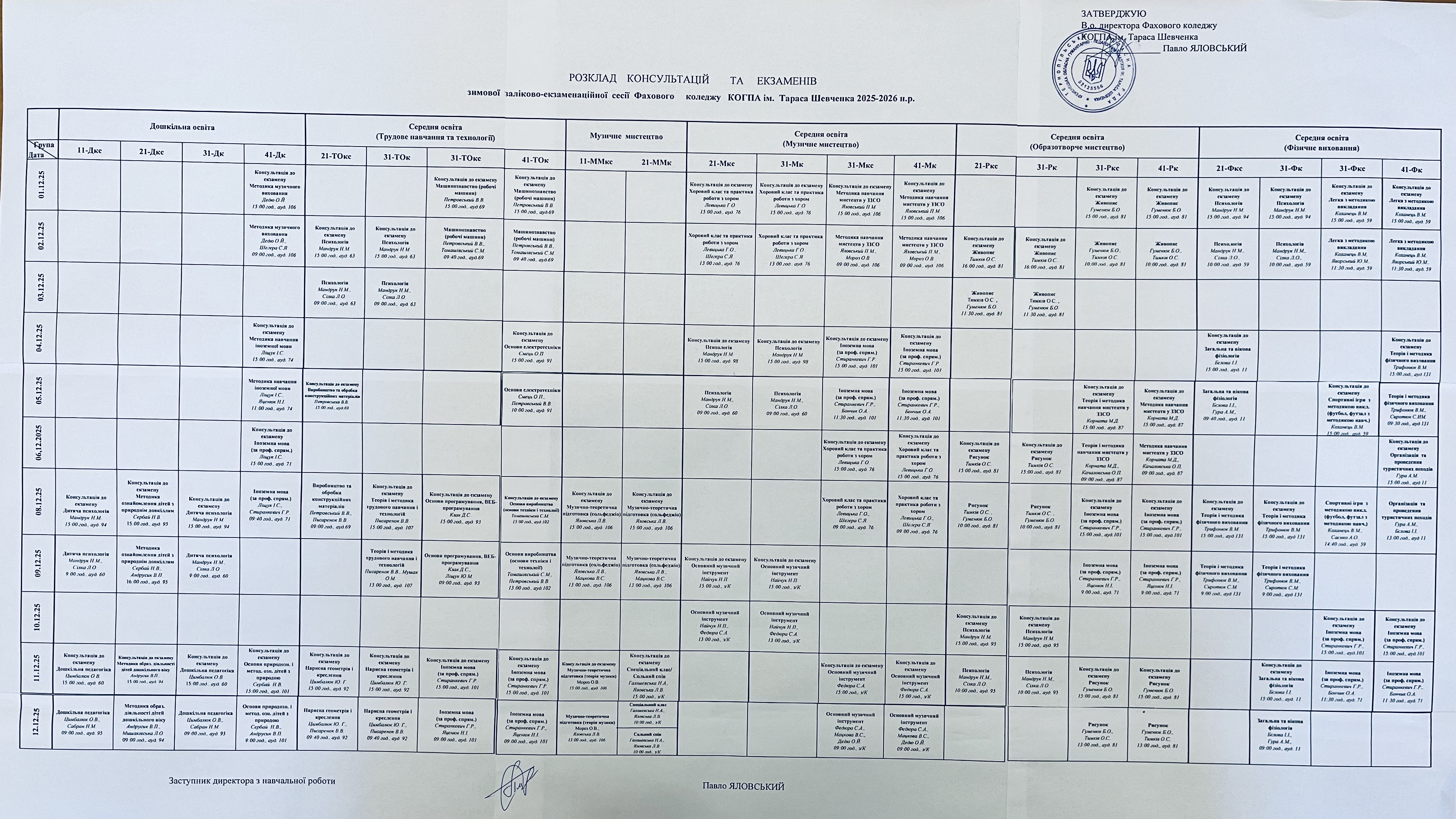 Розклад консультацій та атестації здобувачів фахової передвищої освіти