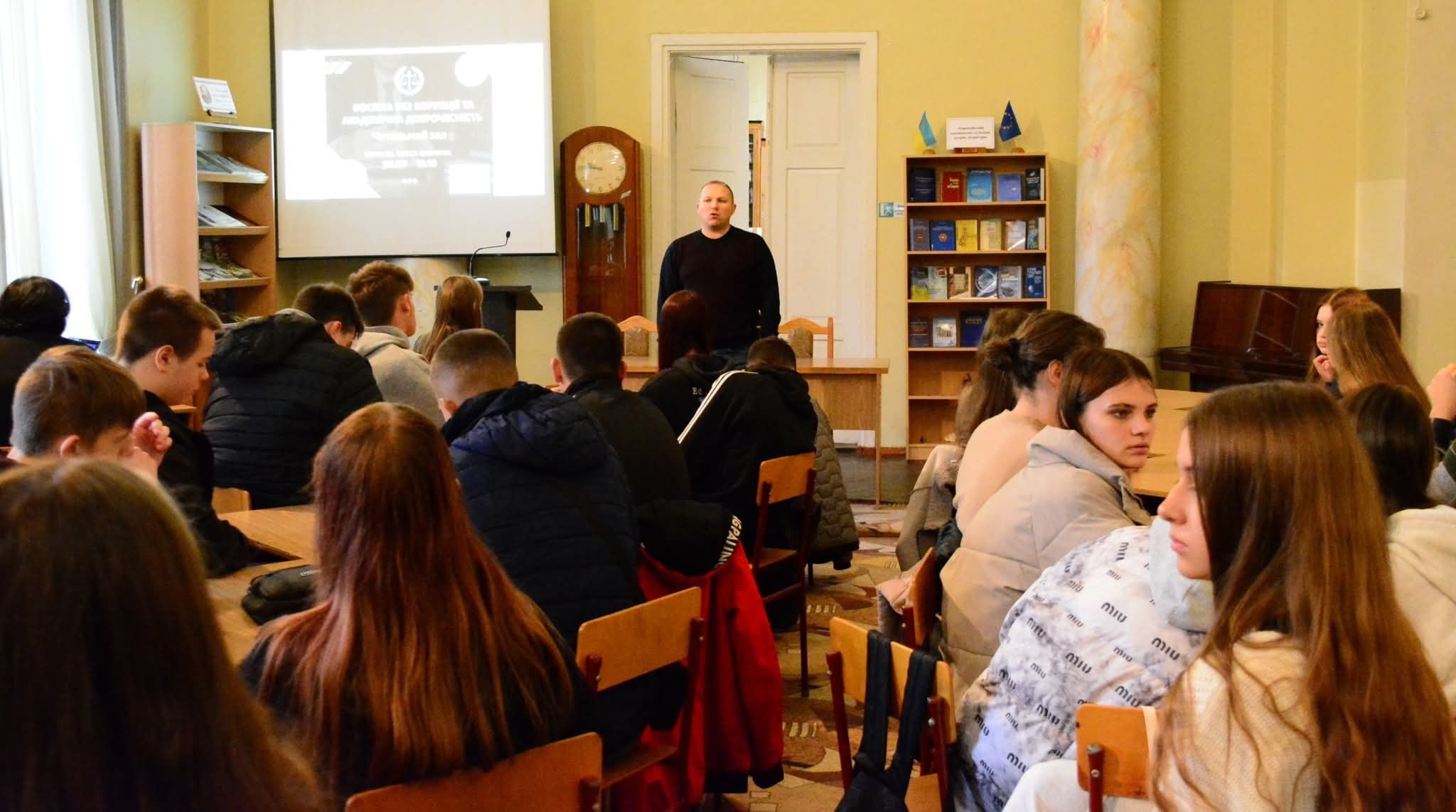 Нещодавно у читальному залі академії відбувся інформаційний захід Освіта без корупці. Впродовж заходу виступили: відповідальний за підрозділ протидії та виникненню проявів корупції у КОГПА ім. Тараса Шевченка – Володимир Банах, фахівець західного міжрегіонального центру надання правничої допомоги – Тетяна Точинська, та уповноважена особа з питань запобігання та протидії корупції у фаховому коледжі КОГПА ім. Тараса Шевченка – Наталія Яцюк.