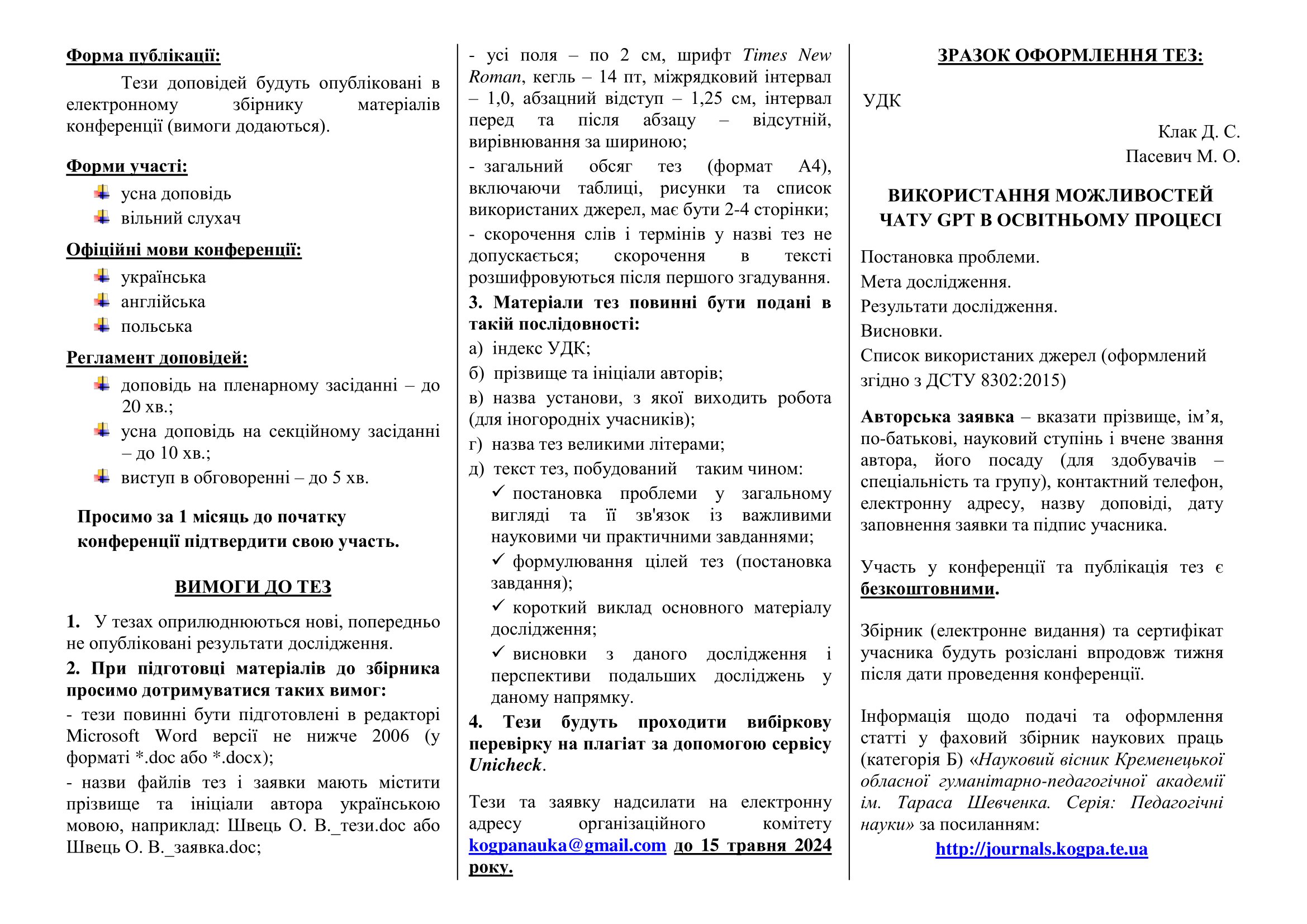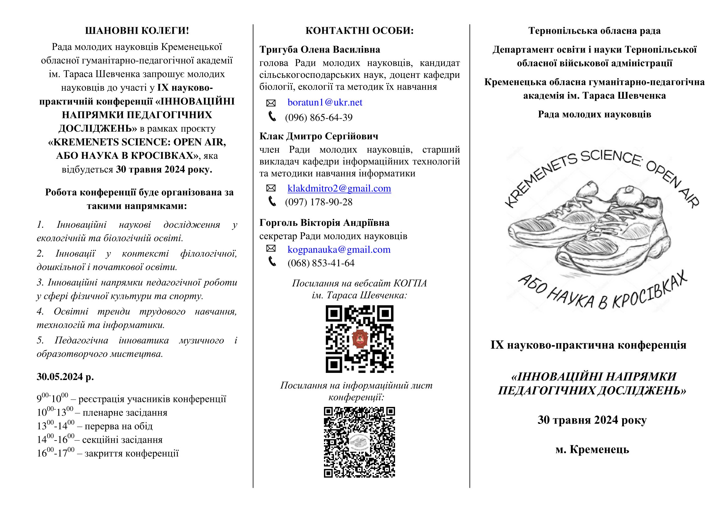 ІХ науково-практична конференція «ІННОВАЦІЙНІ НАПРЯМКИ ПЕДАГОГІЧНИХ ДОСЛІДЖЕНЬ» в рамках проєкту «KREMENETS SCIENCE: OPEN AIR, АБО НАУКА В КРОСІВКАХ»